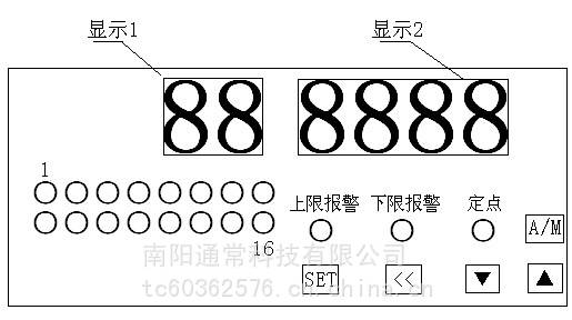 仪表面板采用双色指示灯指示上下限报警,红色为上限报警,绿色为下限报警,每个通道都有一个双色指示灯。